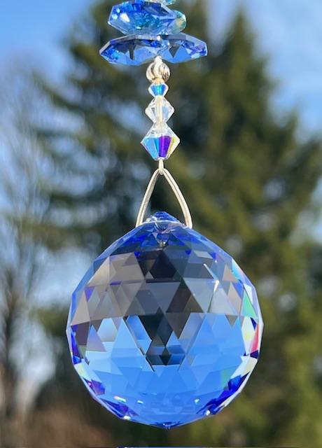 Größe: Kristallkugel in light sapphire, Ø 40 mm, Kristallkette ca. 40 cm, die komplette Länge (Kristallkugel, Kette und Schlaufe) beträgt ca. 50 cm